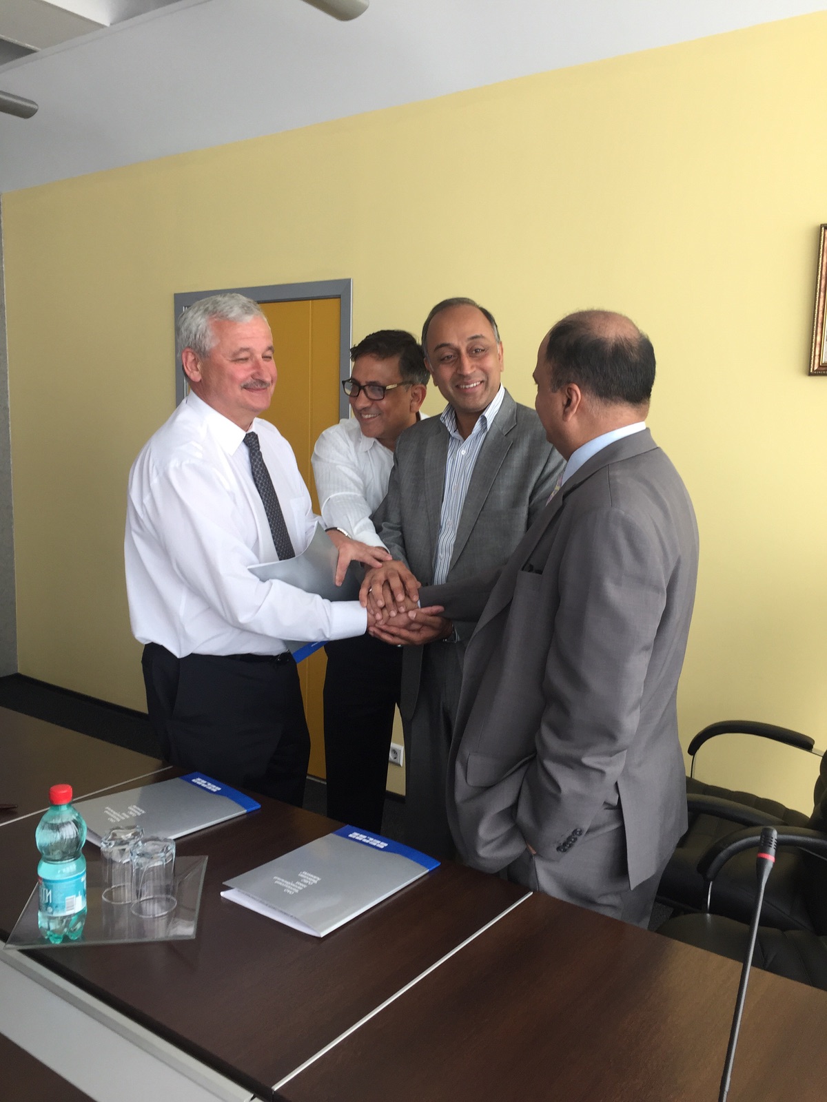 As a part of recent Indian Presidential delegation to Balarus, OJSC Balaz, Belaz-Enrika joint venture and Voltas Ltd signed a "Tripartite Agreement" with an aim to promote sales and providing after sales support for Belaz equipment to India centric companies involved in mining projects abroad namely, in Asia, Africa and Australia. This agreement will provide the opportunity for Belaz to promote its world class equipment to Indian companies abroad, while ensuring highly qualified after sales service and regular supply of spares through its joint venture and Voltas Ltd, which has the support of Tata International network in these regions. The agreement was signed by Mr. Petr Parkhomchik - Director General OJSC Belaz, Mr.Pradeep Bakshi - CEO Voltas Ltd and Mr. Samar Shakil - CEO Belaz-Enrika Joint Venture during the Business Forum held at Minsk in June this year. This Forum was attended by President of India - Mr. Pranab Mukherjee, President of Belarus - Mr. Alexander Lukashenko and Ministers from both the countries.