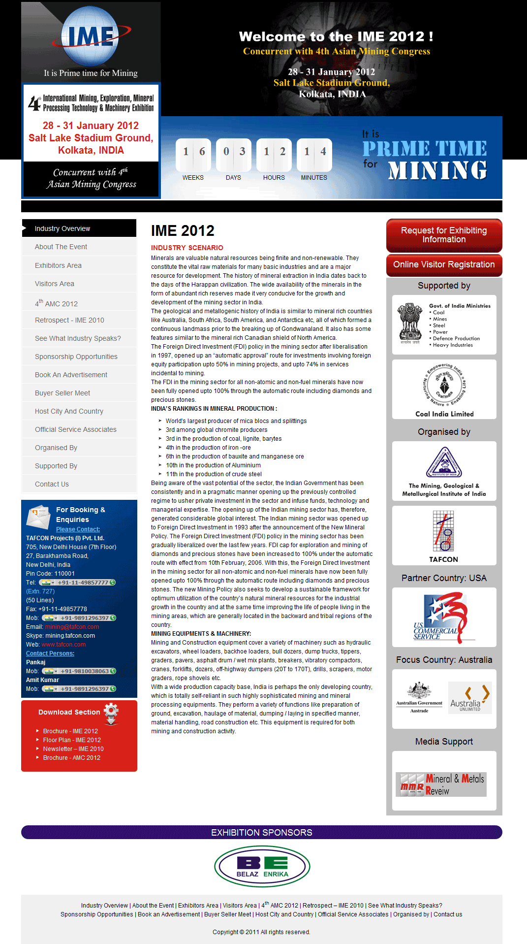 This exhibition is organised by The Mining, Geological and Metallurgical Institute of India and is one of the biggest and largest exhibition of its kind in India. This event is supported by the Government Of India Ministries of Coal, Power, Mines, Steel, Petroleum and Natural Gas, Defence Production, Heavy Industries and also Coal India Limited.
